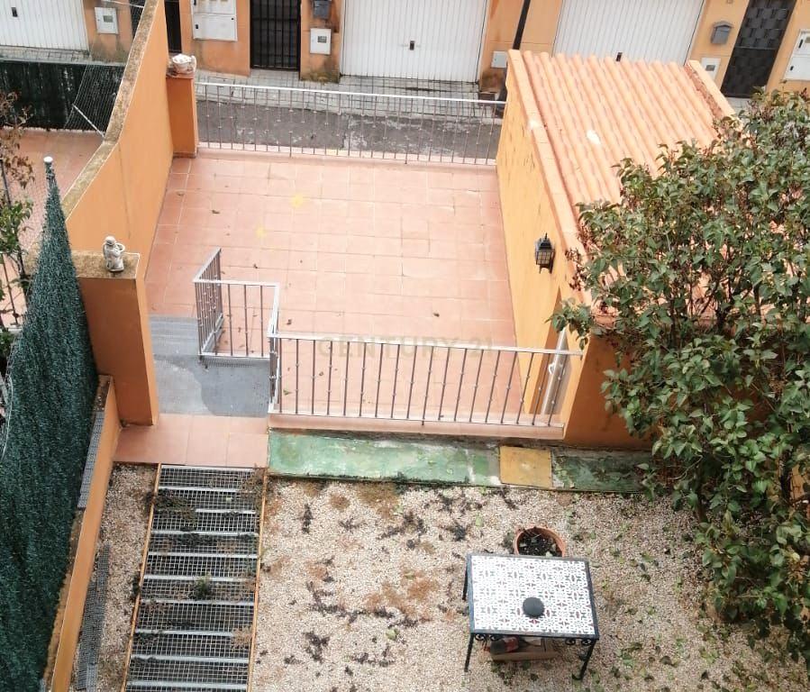 Patio en dos alturas, con zona ideal para reuniones, barbacoa o relax.